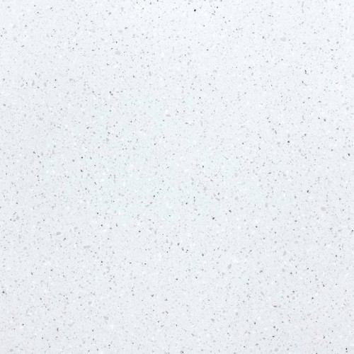 Основной тон — холодный светло-серый, почти белый, с едва заметным голубоватым подтоном. По поверхности равномерно рассеяны вкрапления разных размеров: мелкие тёмно-серые и чёрные точки, более крупные фрагменты серого, бежевого и тёмно-коричневого. Финиш — глянцевый. Итог — живая, нешаблонная поверхность, которая выглядит значительно богаче однотонного белого и при этом остаётся универсальной.