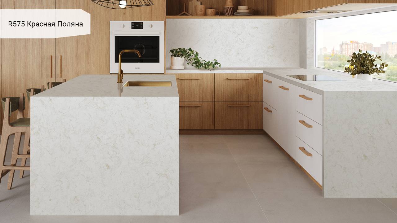 Кварцевый агломерат Аварус R575 Красная Поляна - это идеальное сочетание красоты и функциональности для вашего интерьера. Этот материал изготовлен из натурального кварца, что придает ему особую прочность и долговечность. Благодаря уникальной технологии производства, каждая плитка агломерата имеет роскошный внешний вид, который напоминает натуральный камень.