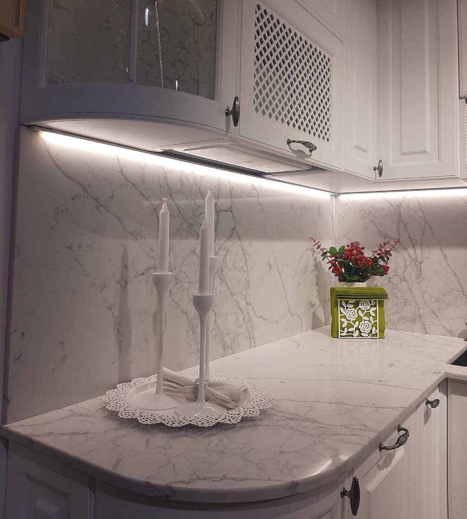 Идеально подходит для изготовления кухонных столешниц, подоконников, барных стоек, столешниц для ванных комнат и стоек ресепшн. Текстура: мраморная. Доступен в толщинах 15 и 20 мм. Закажите образец и убедитесь в качестве материала.