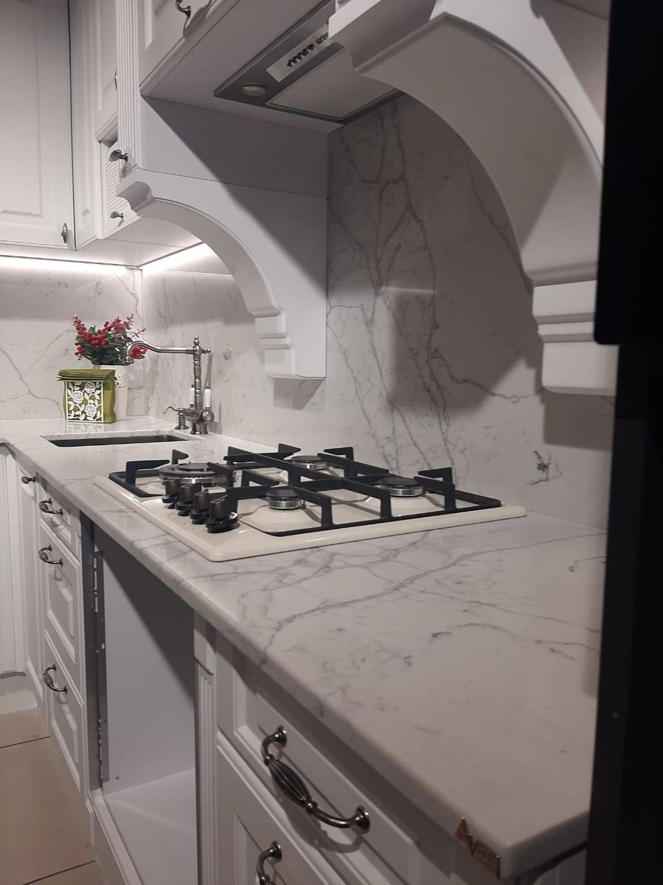 Благодаря плотной беспористой структуре агломерат Avant 7080 Калакатта Пьерфон не впитывает влагу, устойчив к пятнам, царапинам и воздействию бытовой химии. Поверхность не требует специального ухода и герметизации.