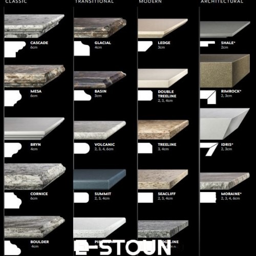 Скошенная кромка собирается из двух частей, что позволяет значительно облегчить конструкцию столешницы, но при этом сохранить вид тяжелой массивной плиты.