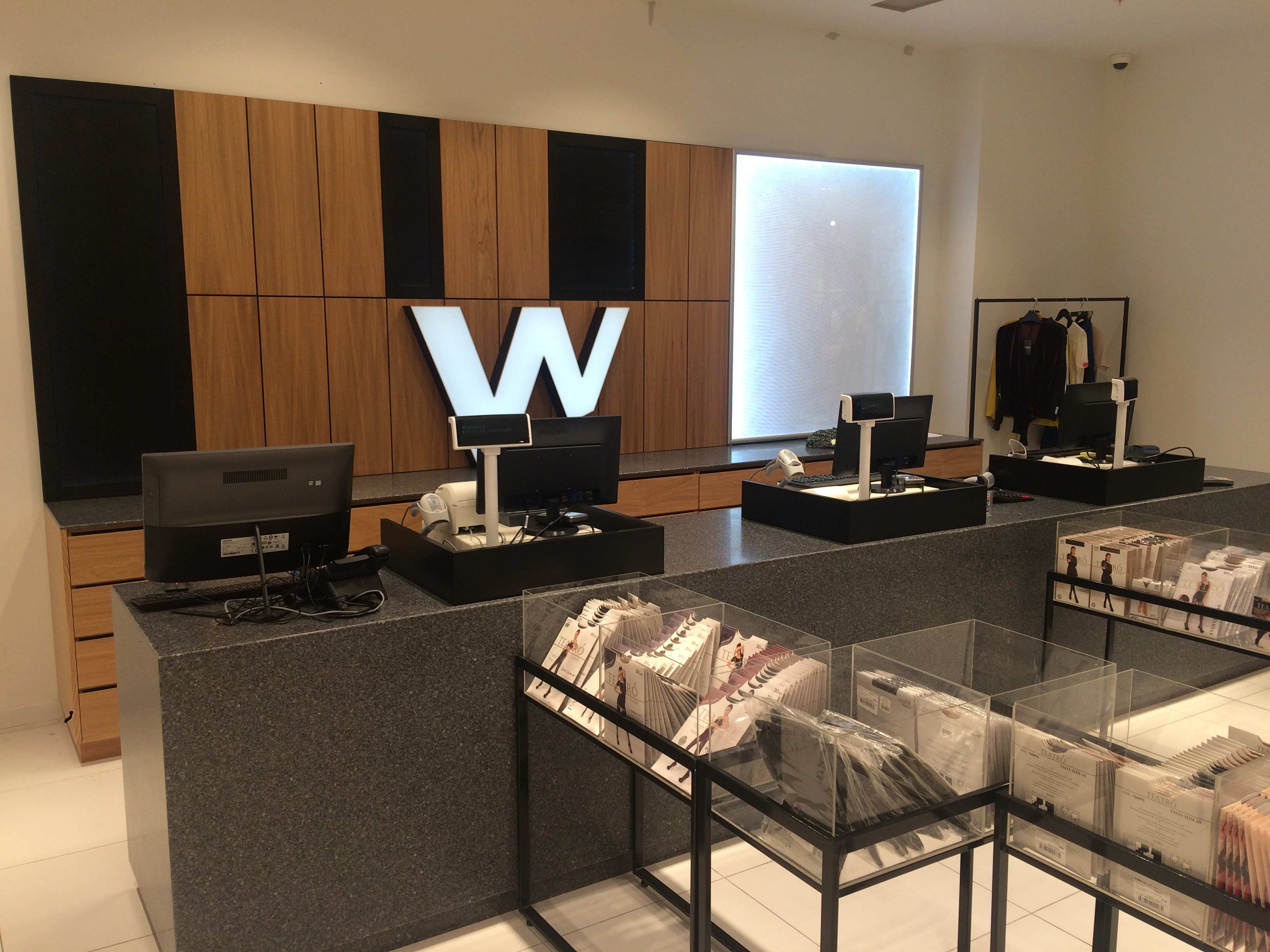 Ресепшен в кассовую зону магазина с столешницей из искусственного камня Samsung Staron Tempest: пример монтажа с фотографиями и видео