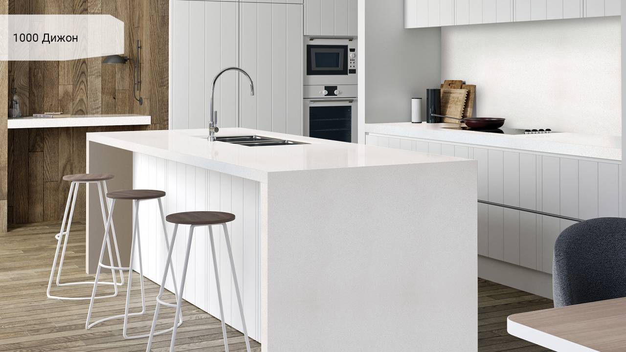 Искусственный камень 1000 Дижон - это стиль и качество. Верный выбор для решения любого интерьера Вашего дома. Наше оборудование позволяет изготовить столешницы и другие поверхности любой сложности, формы и размера. Благодаря этому, мы воплотим самые смелые дизайнерские идеи в жизнь.
