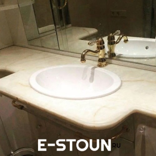 - Из оникса. Встречаются достаточно редко. Физические свойства материала очень схожи с мрамором. Более того, сам по себе декоративный камень оникс (к слову, из него часто делают вставки для мужских печаток) всегда обладает уникальным узором. Единственный недостаток таких изделий - относительно высокая стоимость.